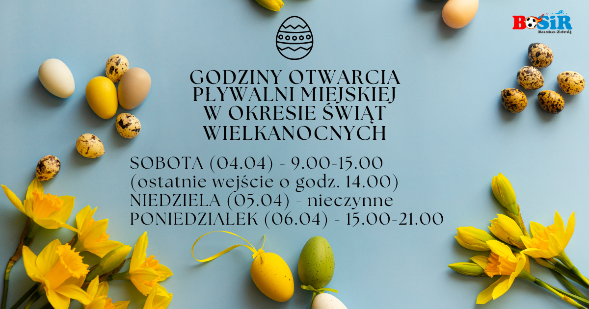 Szanowni Klienci, Przedstawiamy harmonogram pracy Pływalni Miejskiej w okresie świąt Wielkiej Nocy Zapraszamy!