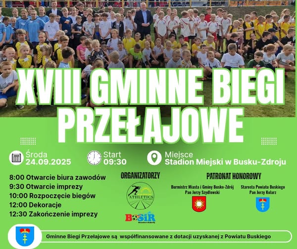Zapraszamy na XVIII Gminne Biegi Przełajowe w Busku-Zdroju Drodzy Uczniowie, Rodzice i Nauczyciele Mamy coś wyjątkowego dla dzieci i młodzieży z naszej gminy – sportową imprezę, która łączy emocje, zdrową rywalizację i fantastyczną atmosferę Każdy uczeń pobiegnie indywidualnie, zdobywając punkty na konto swojej szkoły To oznacza, że każdy krok ma znaczenie – nie tylko dla […]