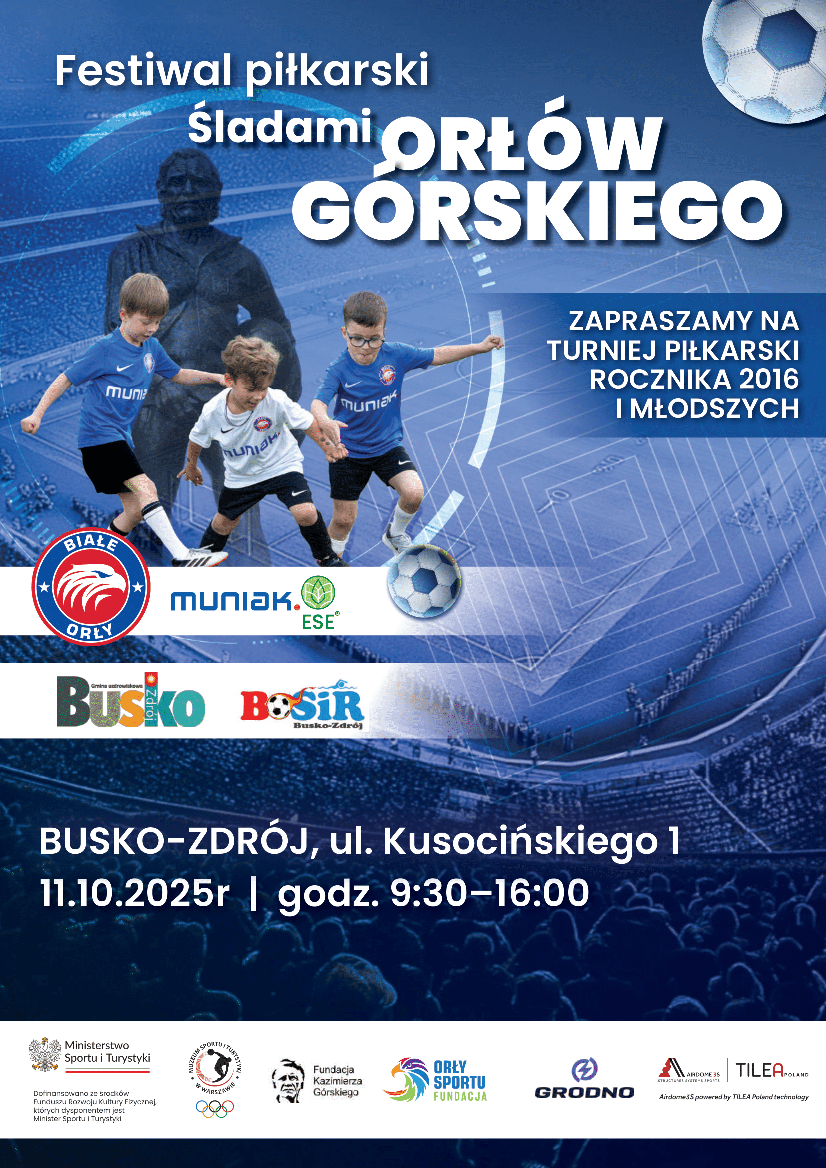 Busko-Zdrój ponownie gospodarzem Festiwalu Piłkarskiego „Śladami Orłów Górskiego” Sportowe emocje i historyczna lekcja już 11 października 2025 roku. W sobotę, 11 października 2025 r., Busko-Zdrój po raz piąty stanie się stolicą dziecięcej piłki nożnej. Na boiskach Buskiego Ośrodka Sportu i Rekreacji (BOSiR) odbędzie się wyjątkowe wydarzenie – Festiwal Piłkarski „Śladami Orłów Górskiego”, organizowany przez Akademię […]
